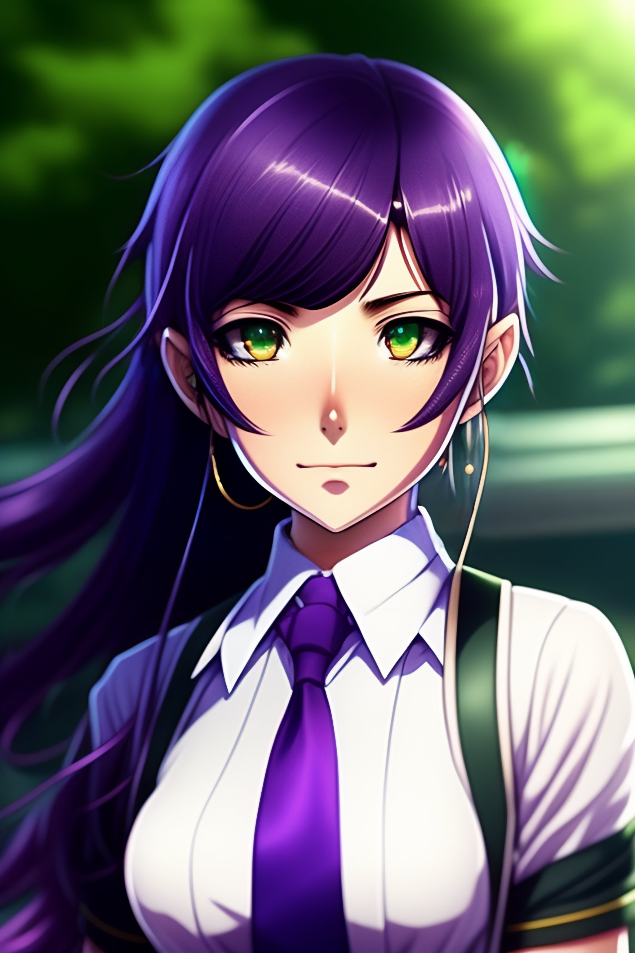 Lexica Schoolgirl with purple hair, green eyes, in school clothes